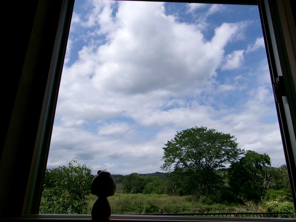 富岡からの風景です。こけしちゃんも一緒です。